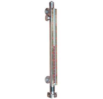 磁性翻柱式液位計(jì)是根據(jù)液體對(duì)浮子產(chǎn)生浮力及磁性耦合的原理設(shè)計(jì)和工作的。當(dāng)被測容器中的液位發(fā)生變化時(shí),液位計(jì)主導(dǎo)管中的浮子產(chǎn)生升降,浮子中的長久磁體驅(qū)動(dòng)紅、白磁翻柱產(chǎn)生180°翻轉(zhuǎn)來指示液位,對(duì)應(yīng)于紅、白磁翻柱界位處就是實(shí)測液位。